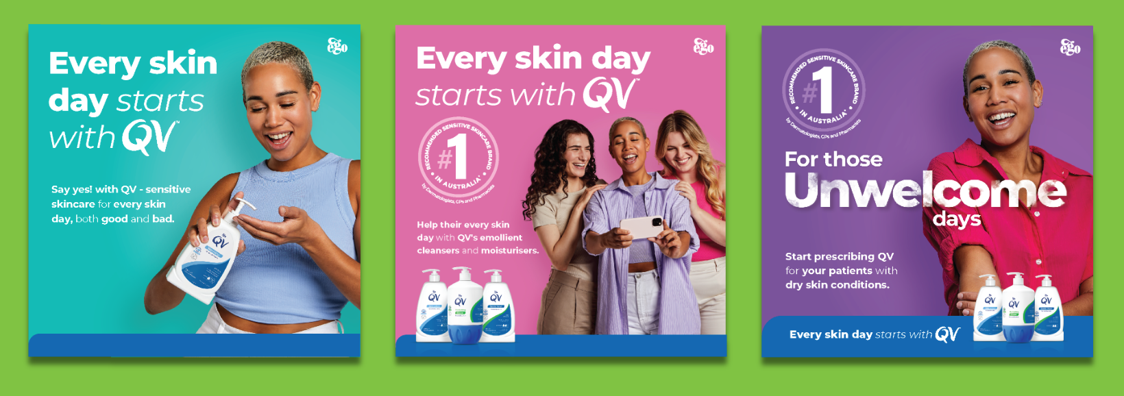 The result was a bold, disruptive digital presence designed for both good and bad skin days, encouraging consistent use and helping QV stand out with a more modern, behaviour-changing creative expression.