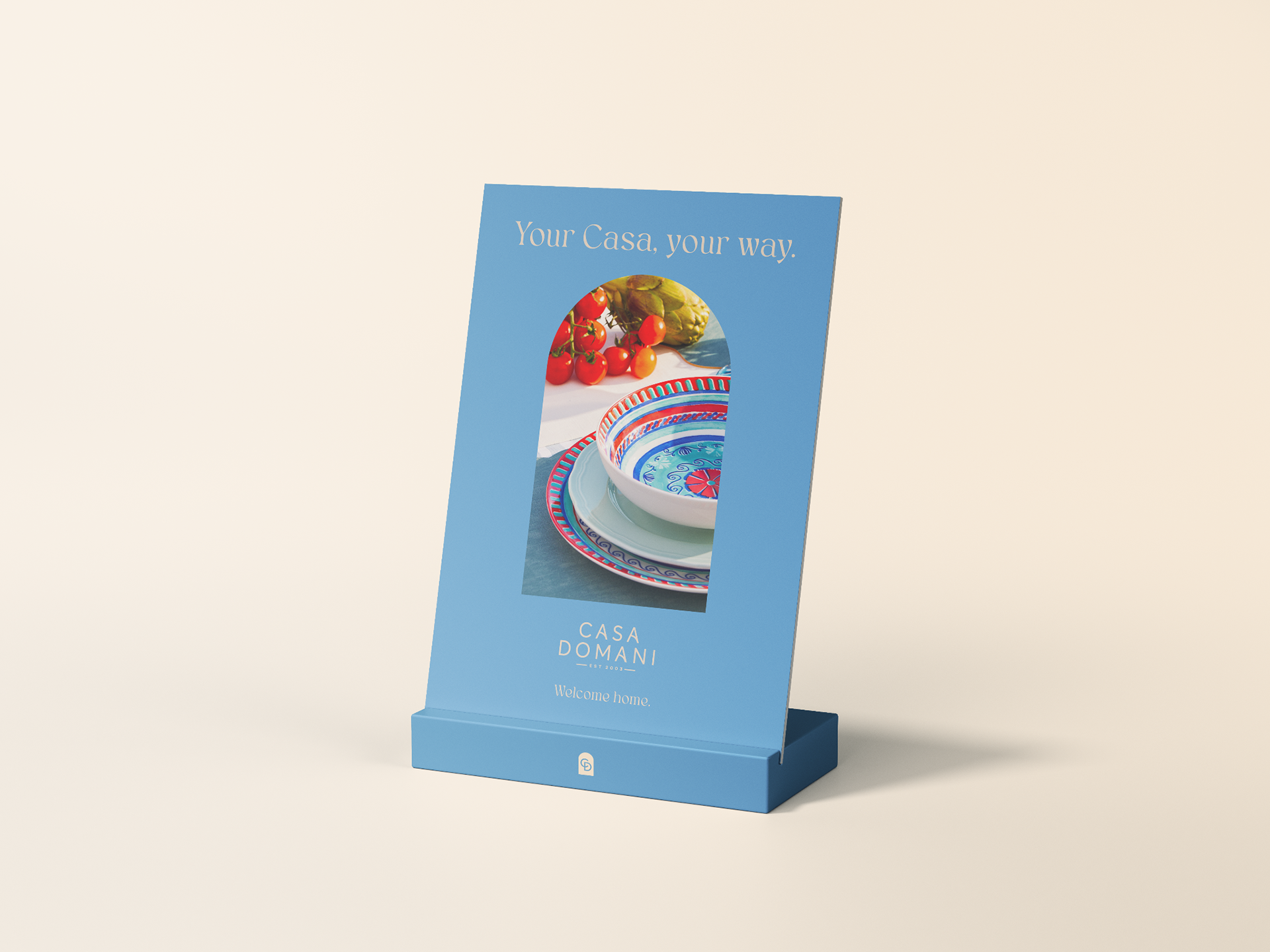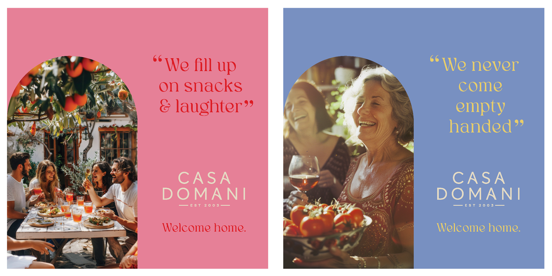 The wider campaign extended this thinking across packaging, point-of-sale, social and web, with every touchpoint reinforcing Casa Domani as more than a product, positioning it as a warm, welcoming presence that transforms dining spaces into sanctuaries. Alongside the visual identity, the animated content further elevated the brand experience, enhancing engagement across digital platforms.