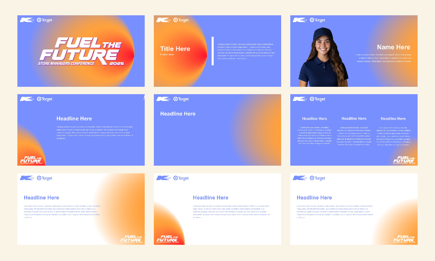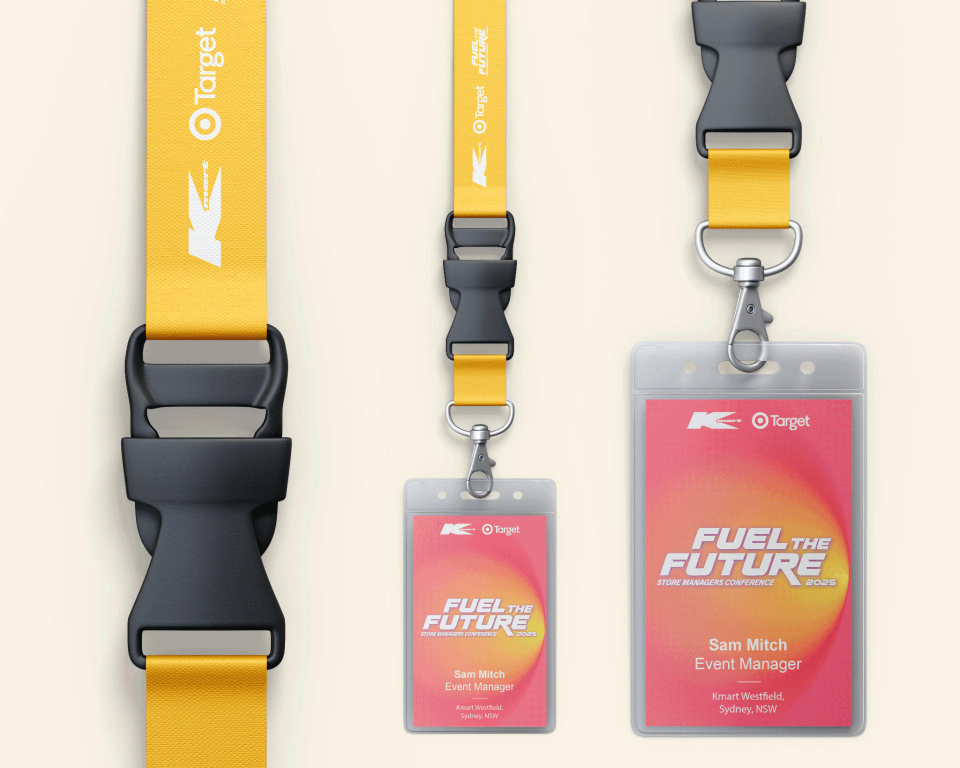 Working on the Kmart 2025 Store Managers Conference, I was responsible for AV and design execution. This included collaborating with sound artists, directing and producing voiceovers, and creating sound-designed entrance stings that set the tone for each session. I oversaw the coordination and application of the event branding, ensuring every asset, display and touchpoint followed guidelines and remained visually consistent across the entire venue.