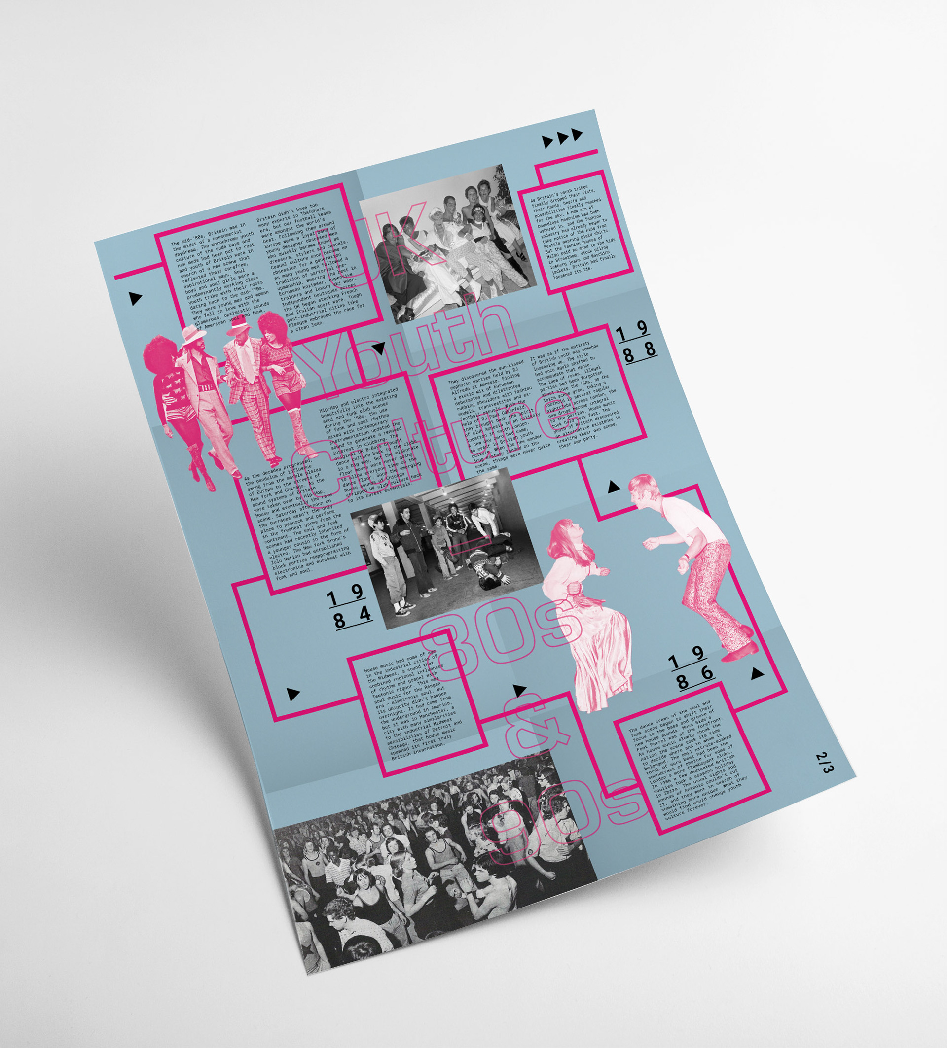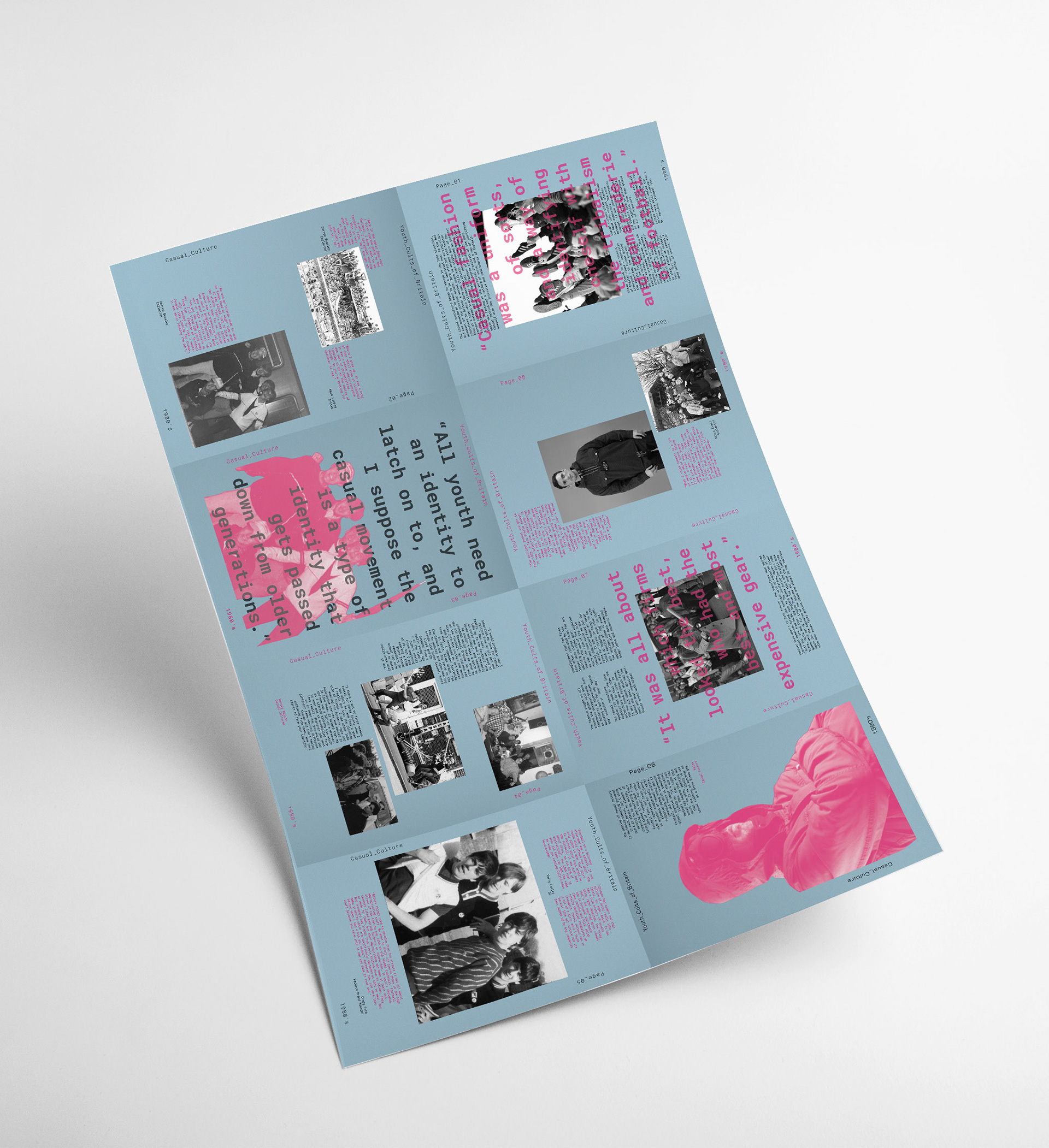A multi-dynamic zine and poster series that explores some of the youth subcultures in the UK during the '80s & '90s. This series touches on how social, economic, and political impacts of everyday life informed the decisions of how the youth of Britain chose to dress. The zines delve into the fashion styles that dominated these subcultures, looking at where influence was taken from, the cultural connotations that some of the styles represented as well as what type of people were adopting these styles and why.